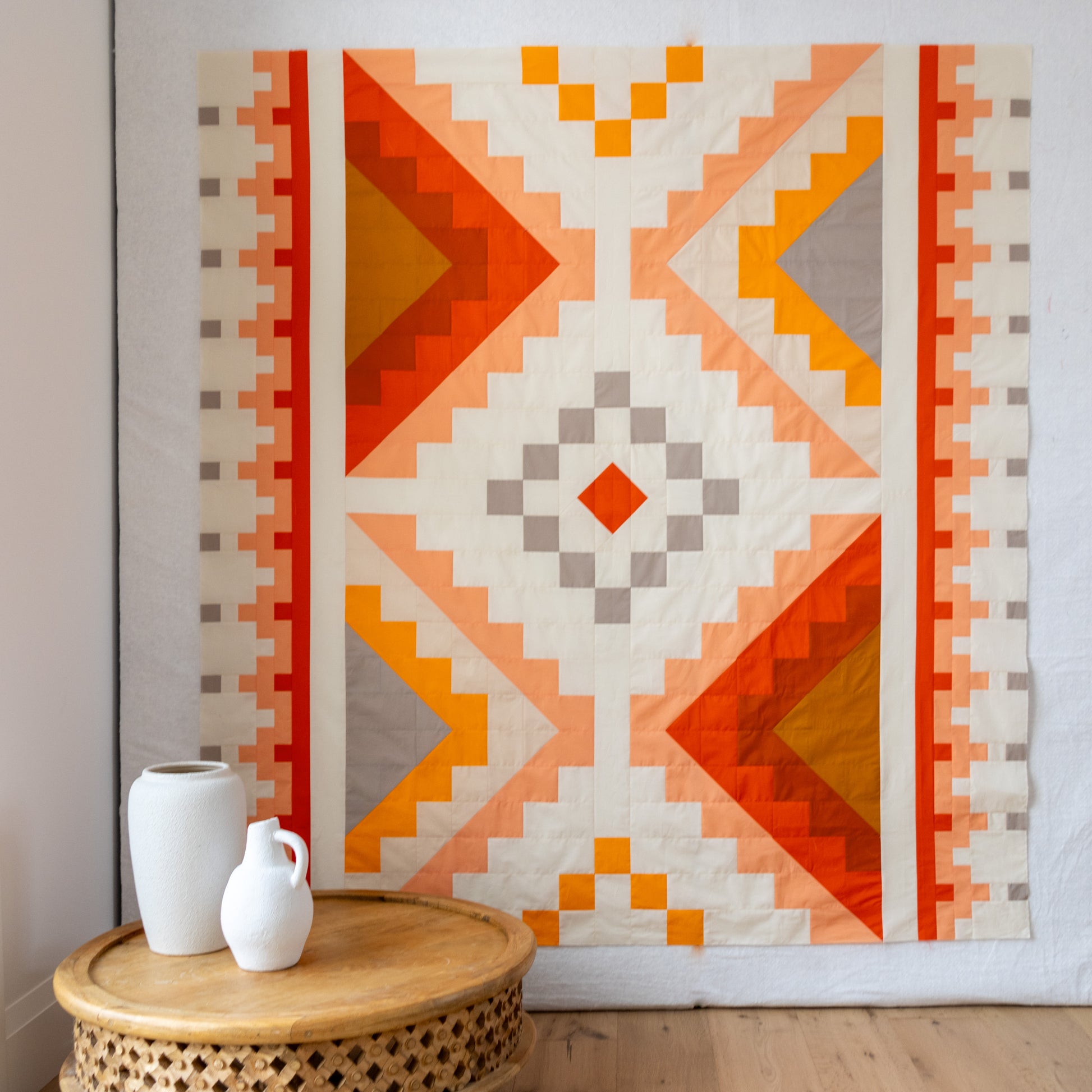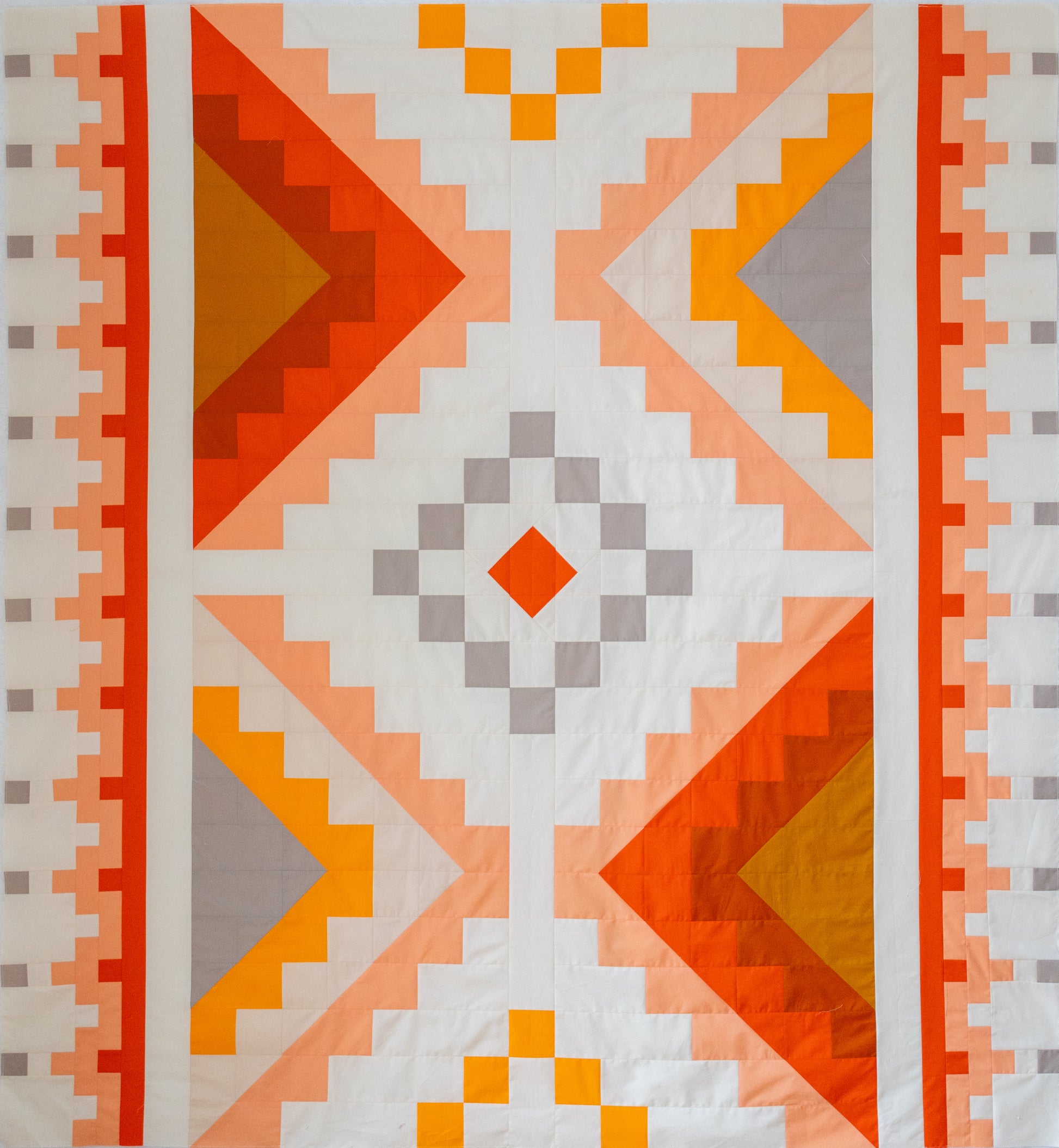 The Courage Dear Heart quilt pattern is a geometric quilt pattern designed during a time of recovery following treatment for lymphoma.